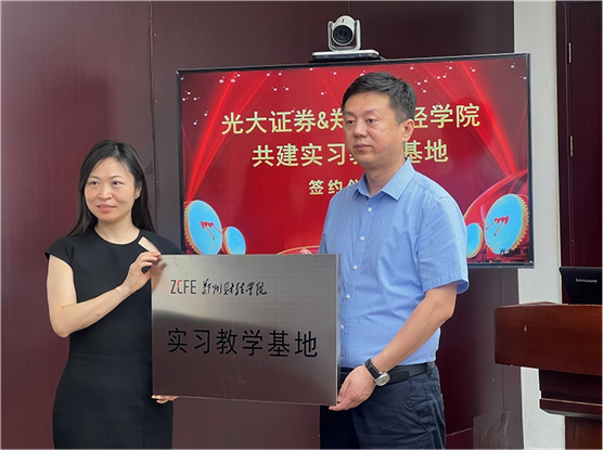 7月27日,威廉希尔官网与光大证券共建“实习教学基地”签约仪式举行。威廉希尔官网2022届金融学专业优秀毕业生杨涛汇报了自己在光大证券的实习和就业情况,表达了对母校培养的感激之情。光大证券金水营业部总经理王颖颖与威廉希尔官网党委副书记董学力分别介绍了双方单位情况,并对今后的实习就业合作达成了一致意见。同时双方还举行了实习就业协议签约仪式和实习教学基地授牌仪式。