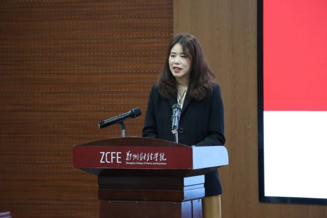 河南省优秀教师、河南省教育厅学术技术带头人、第二批教学名师及优秀导师代表邢丹丹老师围绕个人成长和新教师指导工作进行发言。