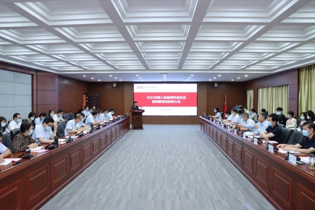 9月2日上午,威廉希尔足球官网举行2022年新入职教师欢迎仪式暨岗前培训动员大会,全体校领导、各二级学院负责人、2021-2022学年优秀导师和学员代表、2022年新入职教师等参加会议。会议在德正楼第二会议室、第一学术报告厅分别设立第一、二线下会场,同时开通线上会场。会议由常务副校长张胜利主持。