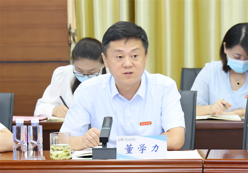 校党委书记李国强以《勇于担当抓党建 维护稳定促发展 以优异成绩迎接党的二十大胜利召开》为题,从党的建设、干部队伍建设、意识形态、疫情防控和校园安全稳定等方面作新学期工作部署安排。强调要切实加强党的建设,为学校事业高质量发展保驾护航。全面提升干部能力素质,为学校事业高质量发展蓄力赋能。压紧压实主体责任,为学校意识形态安全筑牢坚固防线。扎实做好常态化疫情防控,为师生生命健康筑牢安全屏障。全力维护校园安全稳定,为保障党的二十大胜利召开贡献郑财力量。