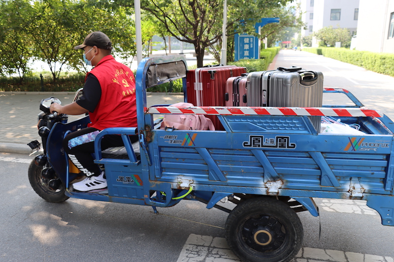 考虑到返校学生行李较多,学校党员志愿者多次往返于校门口和宿舍楼之间,用三轮车帮学生搬运行李,以严格的防疫措施和贴心的服务迎接学生返校。到达宿舍楼后,学生在宿舍门口划定区域内间隔1米距离排队,扫描场所码,再次进行体温测量、行李消杀。核查无误后,经过登记学生方可进入宿舍楼。新学期开始,学生宿舍门禁管理系统即将启用,有助于及时准确获取宿舍管理的各类信息,大幅提升宿舍管理的科学性、高效性、智能化程度,为校园宿舍安全保驾护航。