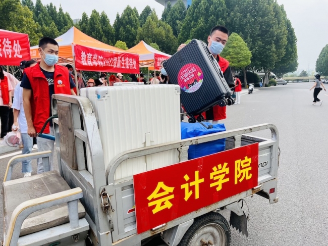 会计学院19财管本2班团支书李登举说,在收到学院招募迎新生志愿者的消息时,自己积极报名参与。在本次迎新活动中他主要负责运送新同学的行李。
