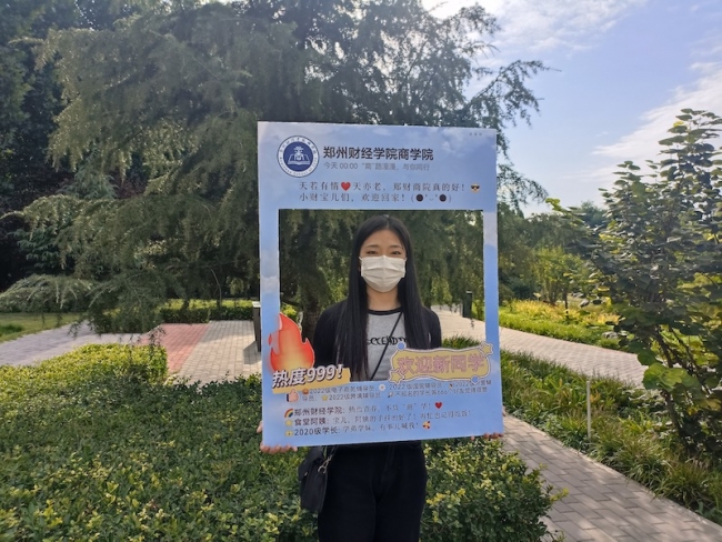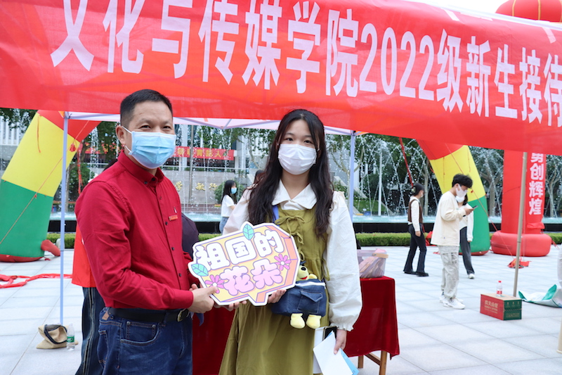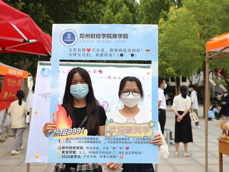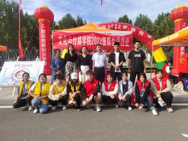 文传学院的迎新现场别出心裁。除此之外,学院还为新生送上其它两份入学礼,一是“见面礼”:“幸会郑财文传——我与校园的第一张合影”,为每一位新生和家长定格下这一美好的遇见。