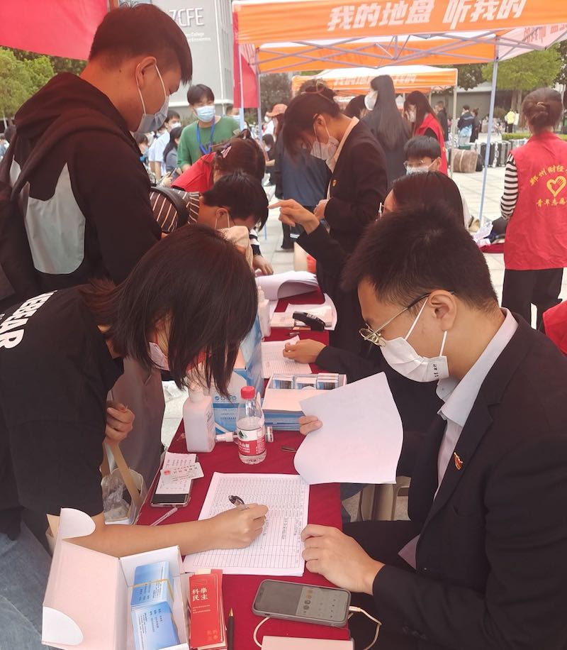 由于自己是学院的“老生”,加上自己还是党员,完成报到后,看到身边一波又一波的新生赶过来报到,王邓菠就萌生了加入学院迎新志愿服务的想法。“三年的大学生活,我对学校已经有了深厚的感情,重新回到郑财,我要把爱留在郑财。”王邓菠兴奋地说。