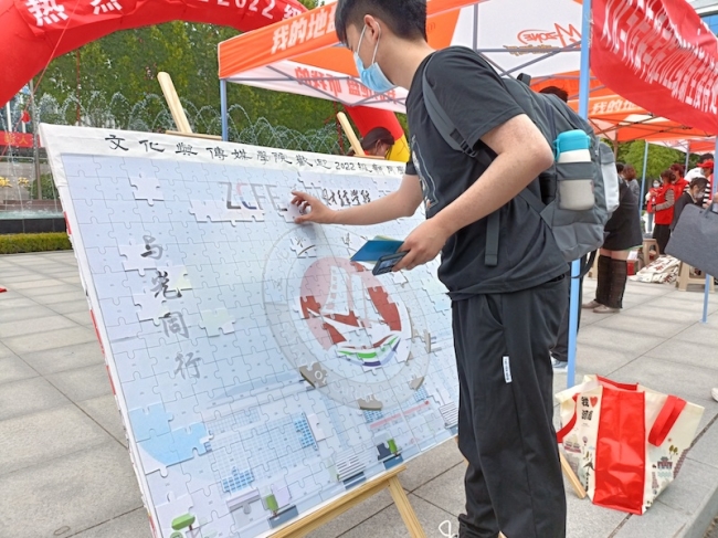 原来,这是学院送给每一位同学的相识礼:“青青子衿 拼出我心”。一块拼图,代表一位学子。“通过拼图环节,让学生一入校门,就感受到文化与传媒学院的温暖,希望能帮助他们找到归属感和对学院的认同感。”文化与传媒学院党总支副书记和文敏介绍到。