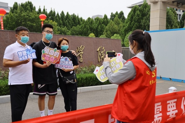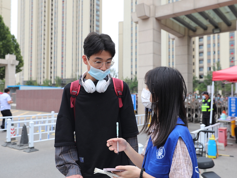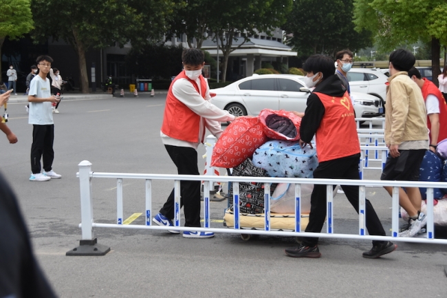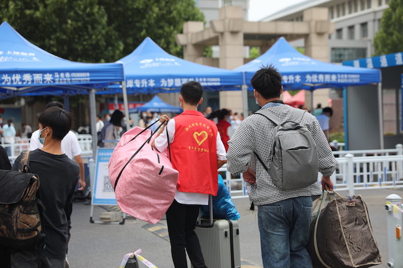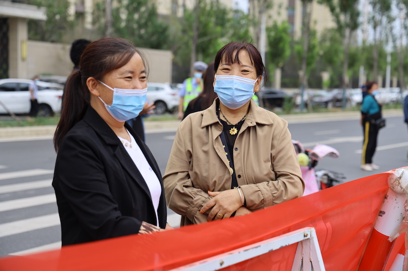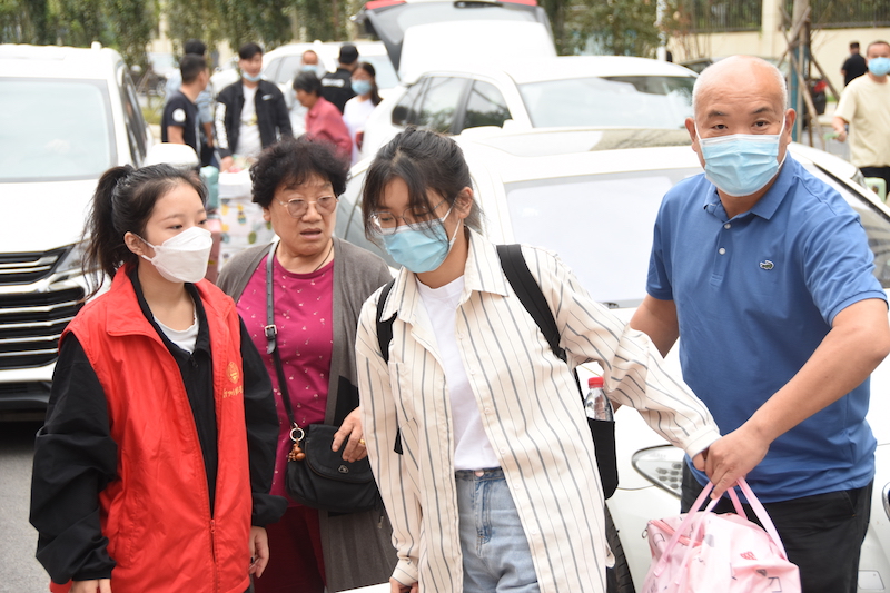 看着志愿者将学生领进校门