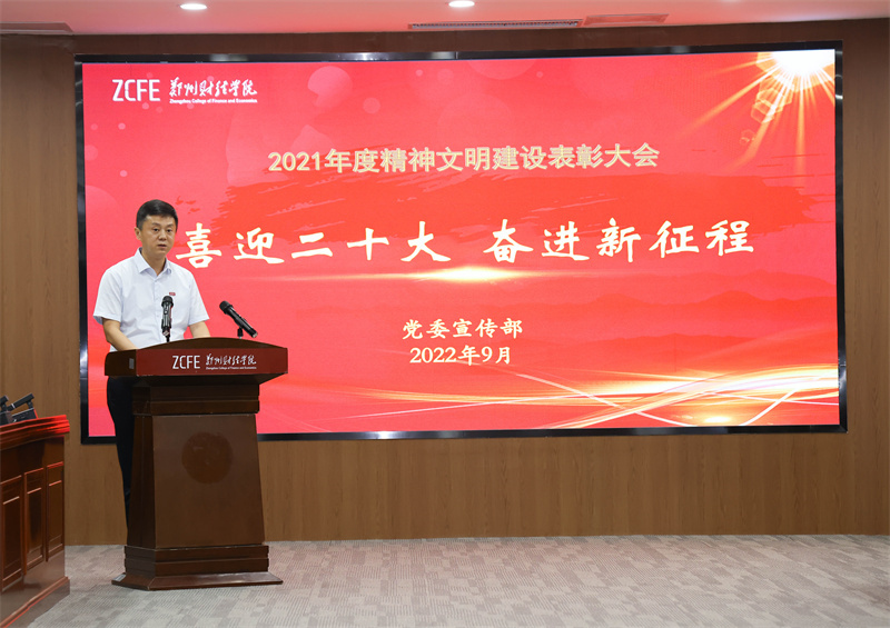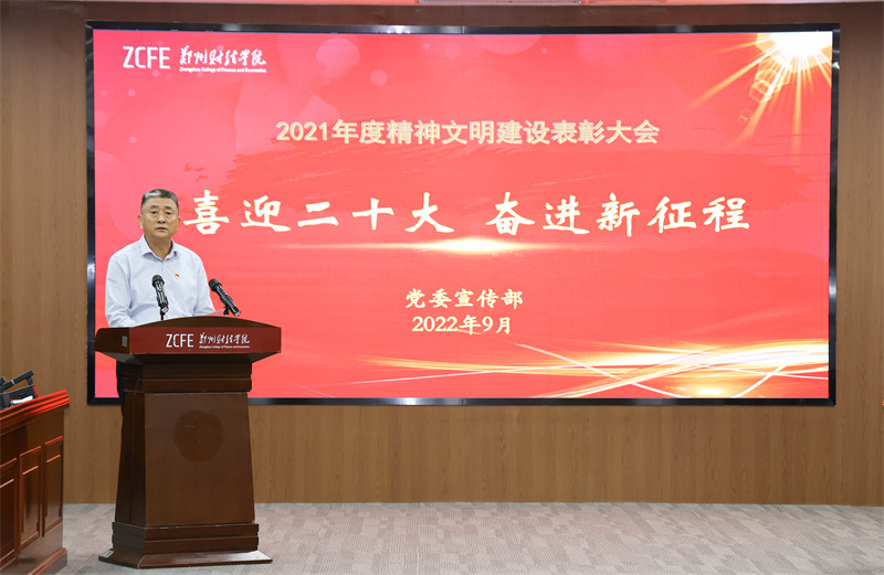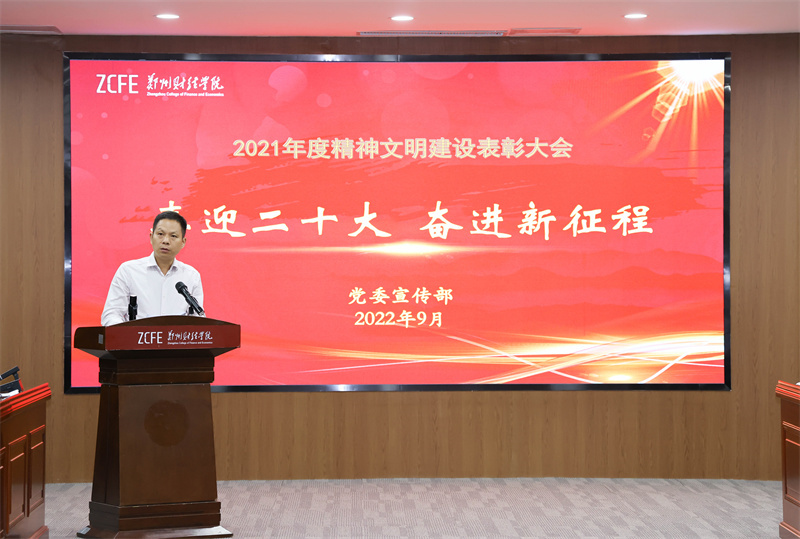9月27日下午,威廉希尔足球官网2021—2022学年精神文明创建总结表彰大会在德正楼召开,本次会议分别在德正楼第二会议室、第一学术报告厅设置主会场、分会场。会议总结成绩、部署工作、表彰先进、交流经验,推动学校精神文明建设再上新台阶。校党委书记李国强、校长王能民等校领导出席会议,各二级学院党总支书记、获奖集体及获奖个人代表参加表彰会,会议由校长王能民主持。