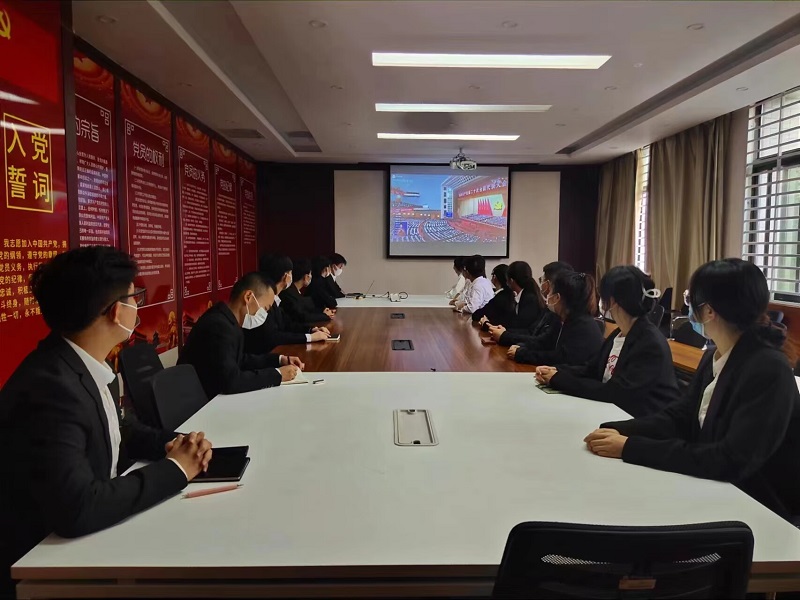 上午10时,校党委书记李国强、校长王能民等校领导,党政职能部门负责人、各二级学院党总支委员代表在德正楼第二会议室收听收看大会盛况。