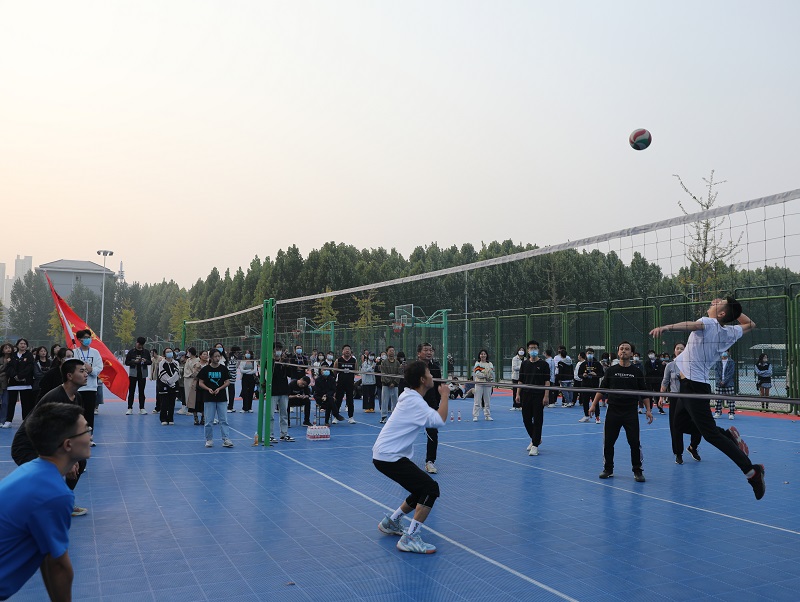 本次比赛双方分别为教工队和艺术设计学院学生队。哨声一响,比赛拉开序幕,双方队员展开激烈角逐。老师们团结协作、相互激励,迸发出澎湃的激情;同学们热情四溢、青春飞扬,彰显出青春的活力。伴随着每一次发球、传球、扣球,师生挥洒汗水,尽情投入,默契配合,场上传来阵阵欢呼声。近两个小时的比赛时长,师生相互呐喊助威,彼此鼓励欢呼。从振臂一击发球,到不断变位接球,在排球的一次次传递中,师生在运动中挥洒汗水,在锻炼中增强体质,增进了彼此的了解和信任。