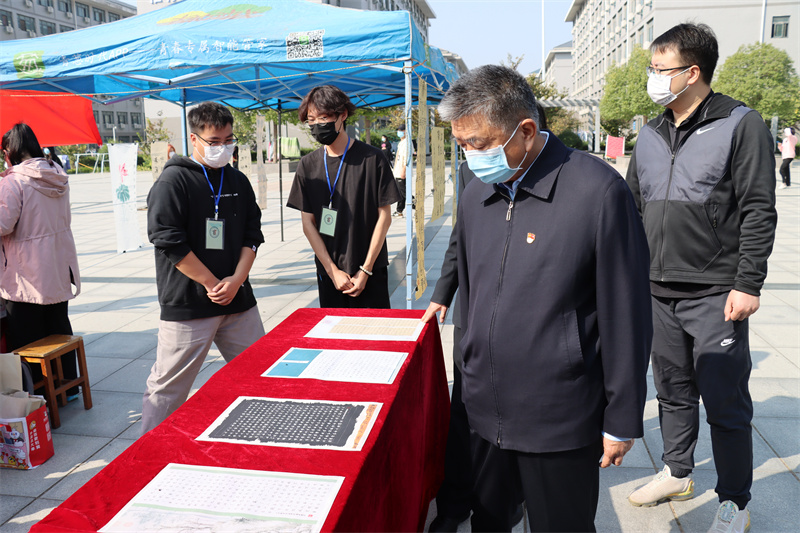 李国强对同学们能够在第一时间参与党的二十大精神学习,并结合大会精神创作高质量的书画作品进行展出给予充分肯定和高度评价。他指出,此次活动形式新颖,意义深刻,在郑财校园里有效地营造了学习、宣传、贯彻、践行党的二十大精神的浓厚氛围。希望同学们坚定不移听党话、跟党走,勤奋学习,立志成才,争做新时代好青年。