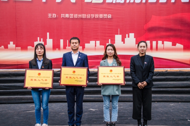校团委副书记和文敏为最佳人气奖获奖学院颁奖