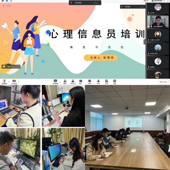 心理信息员是威廉希尔官网心理四级工作网络中最基础的一环,为充分发挥其工作网络的基础功能,心理中心开展了心理信息员线上培训,本次培训由心理中心老师张雪伟主讲。通过培训,心理信息员明确了自身的工作职责,进一步提升了心理健康素养,并表示会积极配合班级心理委员宣传普及心理健康知识,增强宿舍同学的心理健康意识和心理自助能力。
