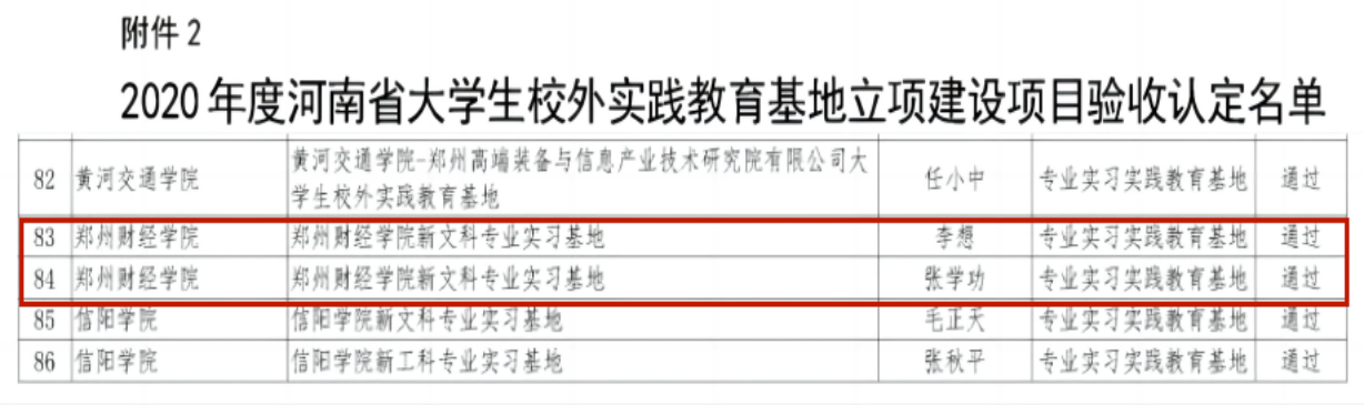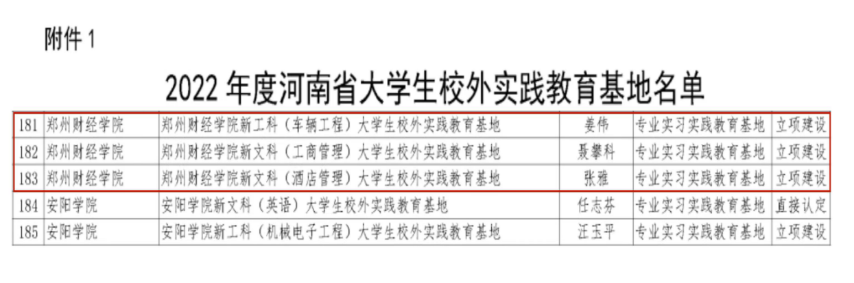 近日,河南省教育厅发布《关于公布2022年度本科高校大学生校外实践教育基地和2020年度立项建设基地验收认定名单的通知》(教高〔2022〕358号),威廉希尔官网申报的新工科(车辆工程)、新文科(工商管理)、新文科(酒店管理)三个省级大学生校外实践教育基地获批立项建设,两个2020年获批立项建设的省级新文科专业实习实践教育基地通过验收。