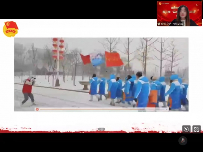 2022年度河南省“百优魅力团支书”郭兴润、 冬奥志愿者张佳琪、校“卓越学子” 贾成旭、国家奖学金获得者马肖月四位优秀学生分别进行分享。郭兴润以“追风少年成长之路”为主题,从特色团支部建设、社会实践、获奖事迹三个方面向同学们展示了其积极向上、勇于创新的精神面貌,激励威廉希尔官网青年学生向榜样看齐,奋发进取。张佳琪以“冬奥蓝走进校园”为主题,从自身经历出发,呼吁青年学生投身到志愿服务中去,她表示自己的志愿服务脚步永远不会停歇,将继续秉承“奉献、友爱、互助、进步”的志愿精神服务社会。贾成旭以“征途漫漫,惟有奋斗”为主题,从自身奋斗之旅的角度向大家表达了人生需要挑战,努力终将结出硕果的实践经验,并明确即使失败也要昂首挺胸、大步向前的积极态度。马肖月以“道阻且长,行则将至”为主题,从志于学之路、游于赛之路、落于实之路三方面讲述了自身励志故事,激励青年学子不怕困难、勇追理想,在贡献青春力量的过程中彰显青年担当。四位优秀学生分享的奋斗故事振奋人心,不仅给予威廉希尔官网学生精神上的鼓舞,使其深刻感受到榜样的力量,更激励了广大青年学生要敢于追梦、勤于圆梦。