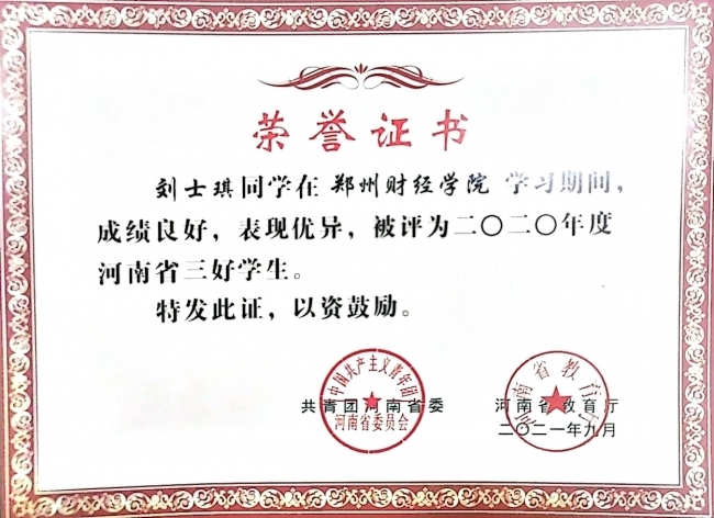 刘士琪获得的部分荣誉证书