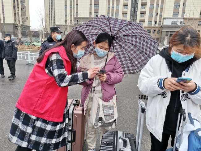 刘士琪(左一)参加迎新志愿服务活动