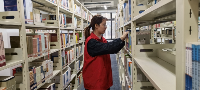 刘士琪在图书馆志愿整理书籍
