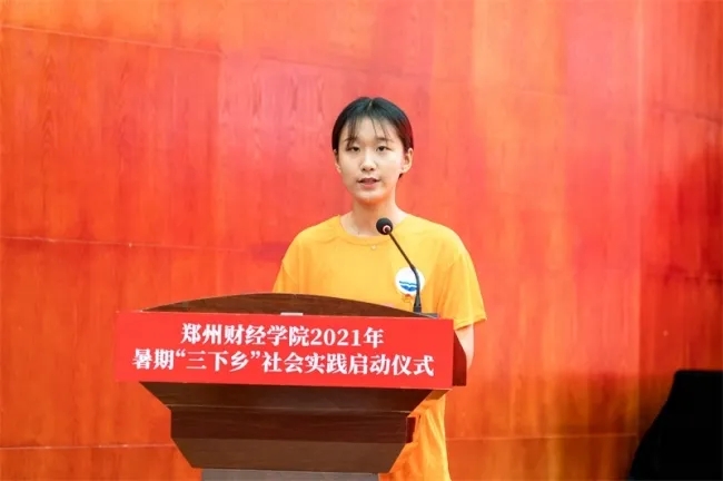 刘士琪在威廉希尔官网2021年暑期“三下乡”社会实践启动仪上演讲
