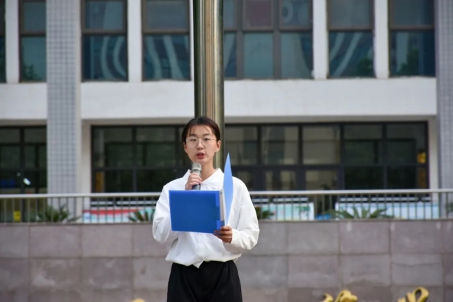 刘士琪作为团员代表在新团员入团仪式上发言