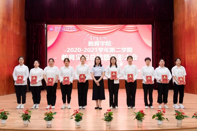 刘士琪(右四)在教育学院教育见习中荣获“优秀见习生”