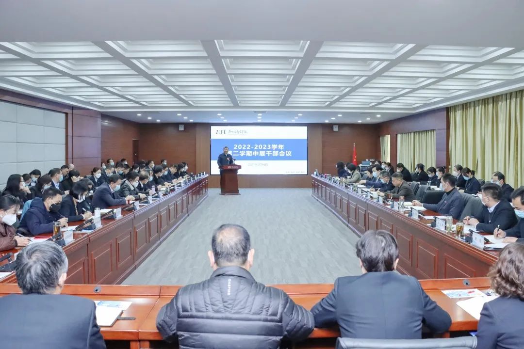 2月16日下午,威廉希尔足球官网在德正楼第二会议室召开新学期中层干部会,学习贯彻落实全省教育工作会议精神,回望总结学校2022年度工作成效,部署2023年工作要点,安排新学期开学前后重点工作。校党委书记李国强、校长王能民等校领导班子成员出席会议,全体中层副职以上干部参加会议。会议由校监事会主席李庆阳主持。