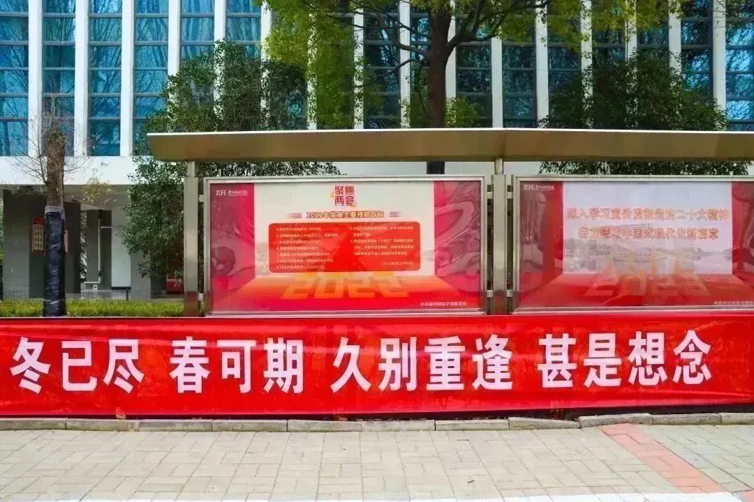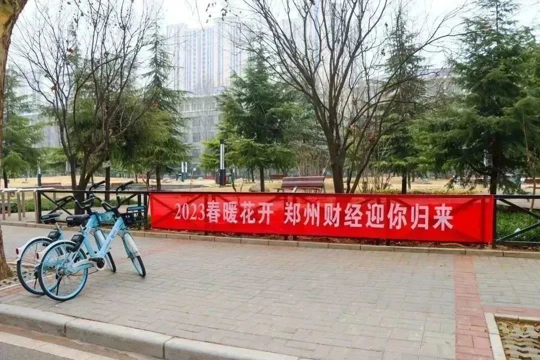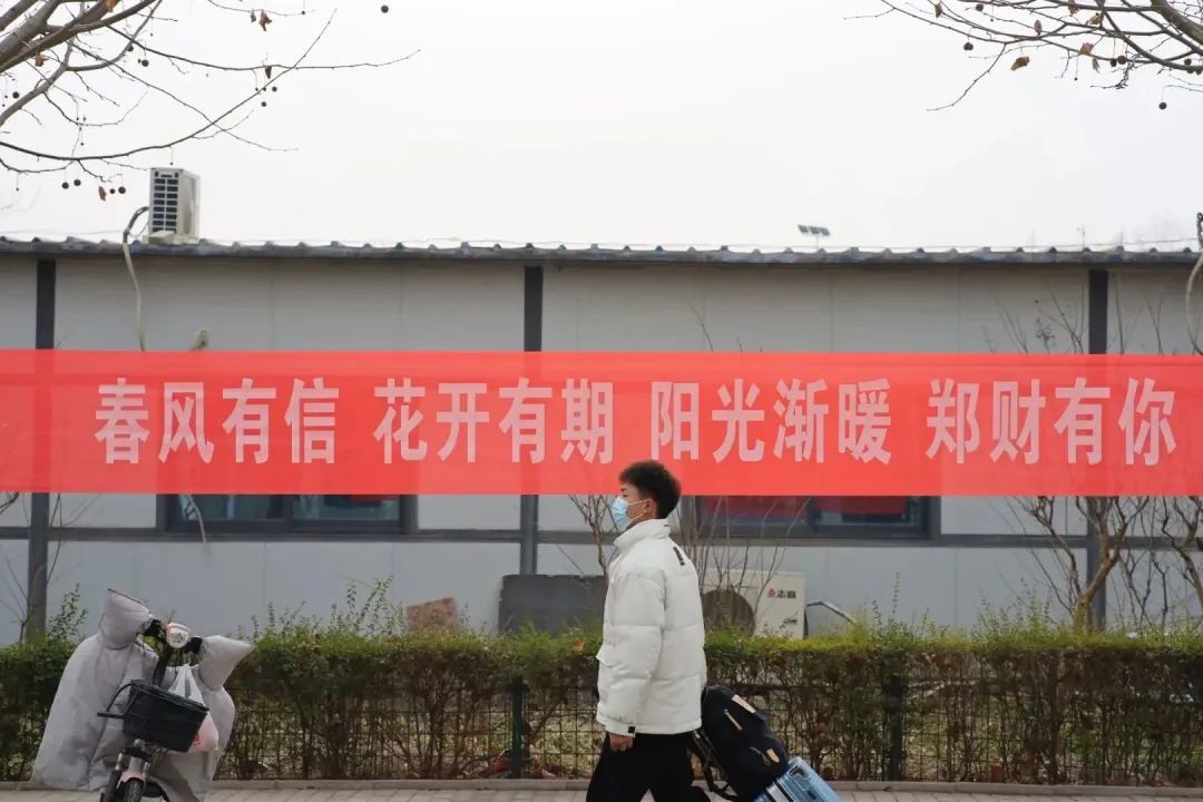 “久别重逢最忆郑财,冬去春来欢迎回家”。一条条暖心的条幅,是对财宝的诚挚欢迎,亦是对新学期的衷心祝福。
