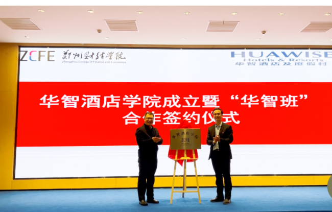 校企双方领导为华智酒店学院揭牌