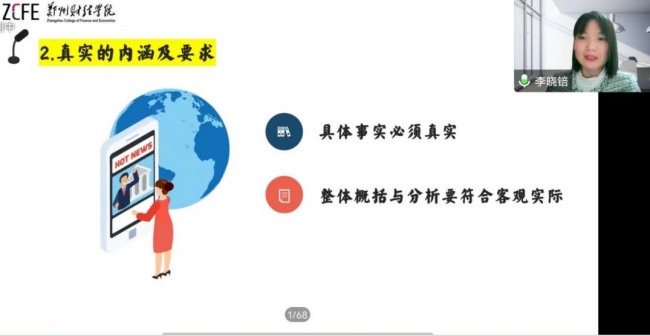 党委宣传部副部长李晓培以“校园新闻写作技能”为主题,围绕威廉希尔官网的新闻宣传工作宗旨,从新闻文体分类、新闻写作基本原则、消息的一般构成、消息的写作结构四个方面为学生全方面多层次阐释了校园新闻写作的方法与技巧。她指出,新闻写作的第一要求是真实,整体概括与分析要符合客观实际。她通过举例的方式着重讲解了消息的定义、种类、结构、标题以及新闻六要素,让学生深入了解到如何写出一篇充实、完整、富有吸引力的新闻报道。