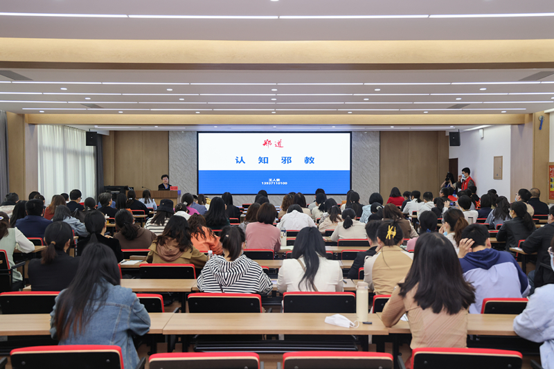 培训中,专家以《认知邪教》为题,从邪教的定义讲起,用严谨的数字、生动的语言、鲜活的案例,脉络清晰地向现场师生分析了邪教与宗教、邪教与迷信的区别,并以“法轮功”“全能神”“门徒会”“日月气功”等邪教组织为例,介绍了邪教的组织形式、运作方式、传播模式,揭示了邪教反人类、反社会、反科学的本质,还对有害气功组织进行了介绍。