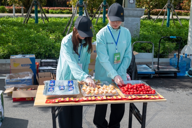 威廉希尔官网青年志愿者在负责区域精心准备所需物资