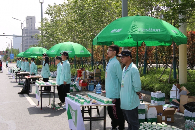 为保证志愿者按时到达现场服务参赛人员,当天威廉希尔官网青年志愿者在学校集合后,统一出发前往龙亭区郑开大道。到达站点后,各志愿小组迅速来到具体负责区域,有序开展各项工作,完成搭建志愿棚、摆放桌子、清洗水果等一系列准备工作。