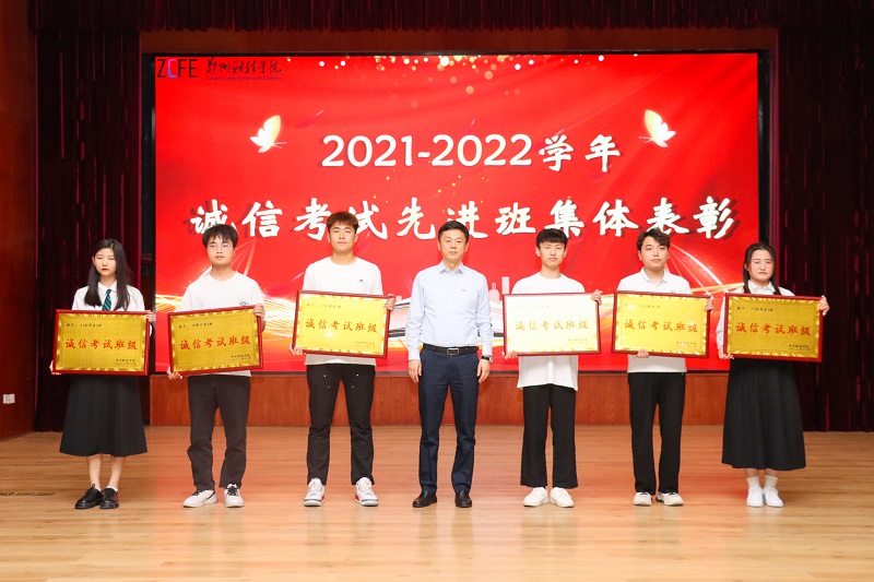 校党委副书记董学力为2020-2021学年和2021-2022学年期末诚信考场班级代表颁奖。