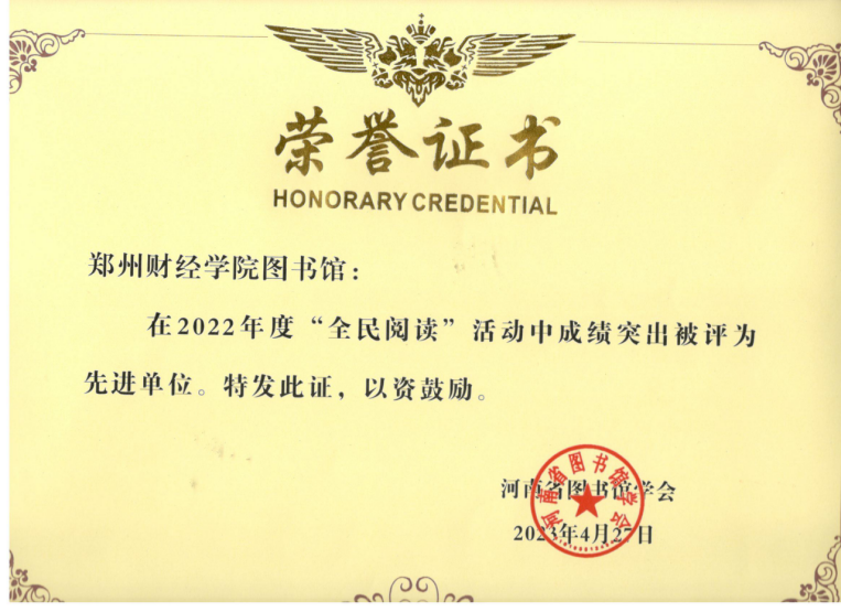 喜报!威廉希尔官网图书馆再次荣获河南省“全民阅读”先进单位