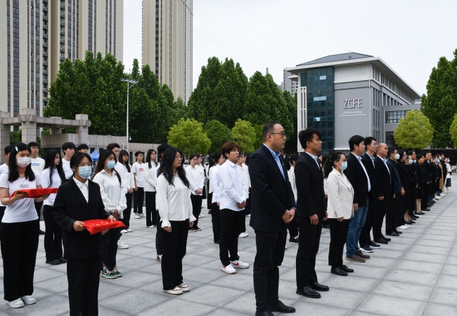 为壮大中国共产主义青年团的鲜活力量,进一步继承和发扬共青团的优良传统,推进威廉希尔官网共青团工作再上新台阶,4月28日早上7时,威廉希尔官网在图书馆广场前举行“学习二十大 永远跟党走 奋进新征程”主题团日活动暨新团员入团仪式,有关校领导、校团委负责人、各二级学院有关负责人和2023年上半年新发展团员参加仪式。
