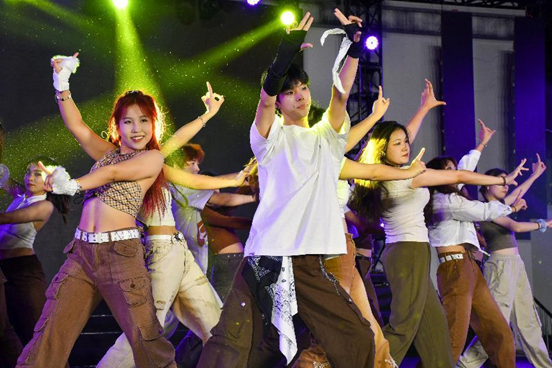 灯光摇曳,舞步齐飞,街舞表演者用舞蹈表达自己对人生的热爱与追求。