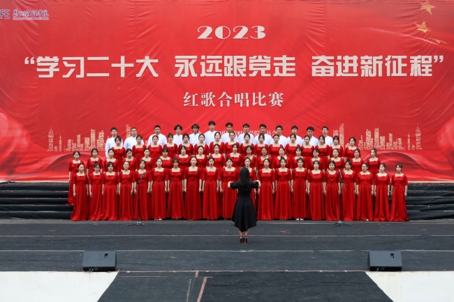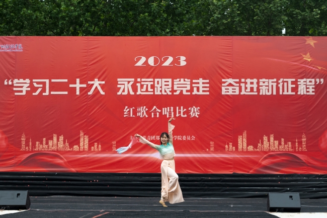 合唱比赛在主持人声情并茂的开场白和观众热情的掌声中正式拉开帷幕。比赛现场,各学院代表队激昂演唱必唱曲目《光荣啊!中国共青团》及《当那一天来临》《打靶归来》《我的中国心》《歌唱祖国》《我和我的祖国》《迎风飘扬的旗》《不忘初心》等一系列经典革命红歌,用嘹亮的歌声带领观众重温在党的领导下,中华儿女齐心协力共建伟大祖国的光辉历程,歌颂祖国的伟大、博爱与辉煌。