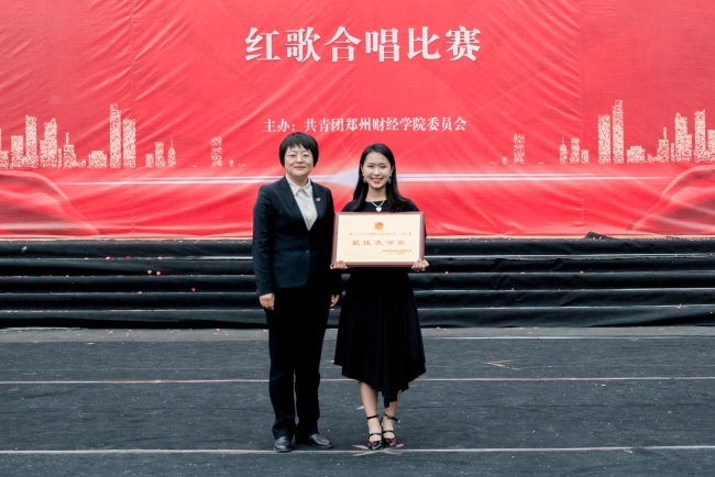 副校长陈静为“最佳表演奖”获奖学院颁奖