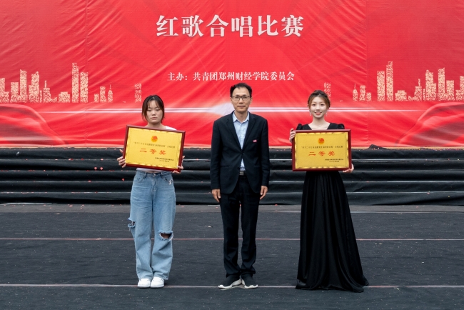 校团委书记周二涛为“二等奖”获奖学院颁奖
