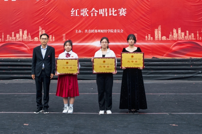 校团委书记周二涛为“三等奖”获奖学院颁奖