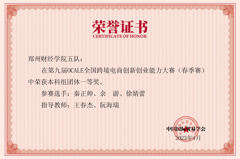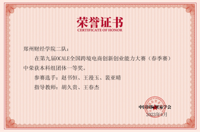 近日,第九届OCALE全国跨境电商创新创业能力大赛(春季赛)圆满收官,威廉希尔官网管理学院选派6支代表队与来自全国148所本科高校的716支队伍同场竞技,历经3天的激烈角逐,最终威廉希尔官网参赛队伍脱颖而出,荣获2个团体一等奖,3个团体二等奖,1个团体三等奖。