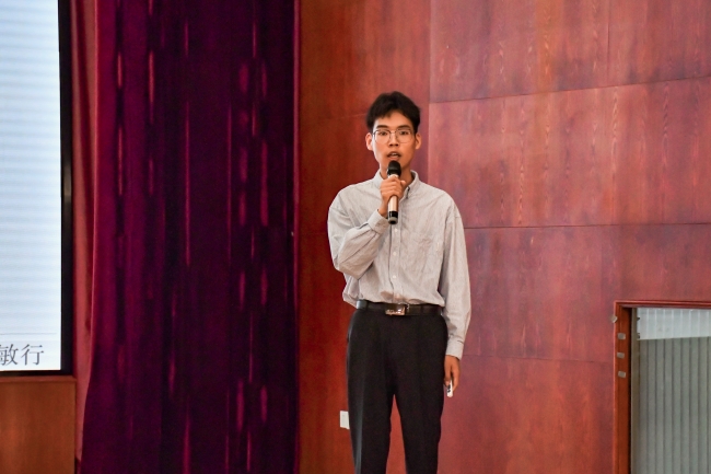 贾成旭用“征途漫漫,惟有奋斗”为主题,讲述了自己担任校青马团支书书记,大学三年保持综合成绩第一,荣获各类省级荣誉的奋斗历程,向大家展示了努力终将结出硕果的实践故事。