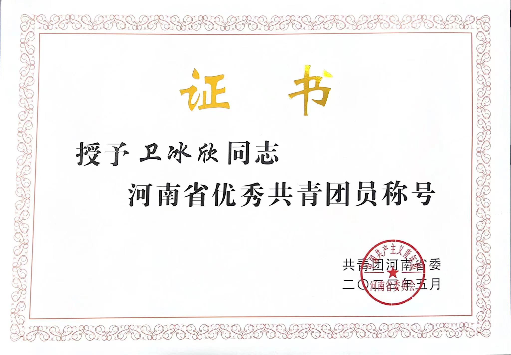 教育学院学生卫冰欣荣获“河南省优秀共青团员”称号