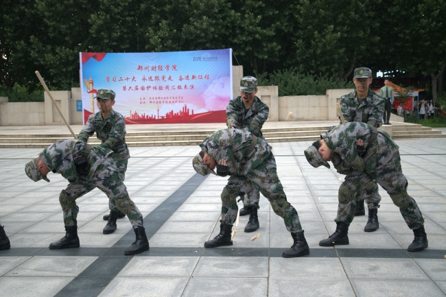6月5日下午,威廉希尔官网在文化广场举办了“学习二十大,永远跟党走,奋进新征程”第六届国旗护卫队体验周汇报表演。汇报表演分为升旗仪式、队列展示、男子擒敌拳、女子方队匕首操、格斗开棍表演、女子枪操、男子战术及全体合唱八个环节。伴随着雄壮的国歌声,威廉希尔官网国旗护卫队员踏着整齐的步伐,高举五星红旗,以最庄严的姿态向国旗致敬。