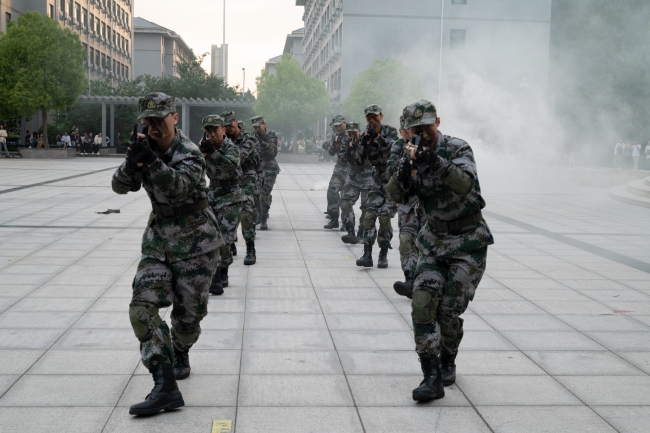 随后,全体国护队员们齐唱军歌。“丹心与日月同在,赤诚共红旗飞扬”,共同的理想激发出昂扬斗志,各方队精神抖擞、队列整齐,激昂豪迈的旋律将同学们带入了军旅生活,他们用振奋人心的声音,诠释了对五星红旗崇高的敬仰和对祖国深沉的爱。
