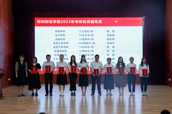 随后,校团委书记周二涛、学生处处长李坤,副校长陈静、副校长张顺利依次为考研优秀学生、考研优秀辅导员、考研先进单位进行颁奖,并合影留念。