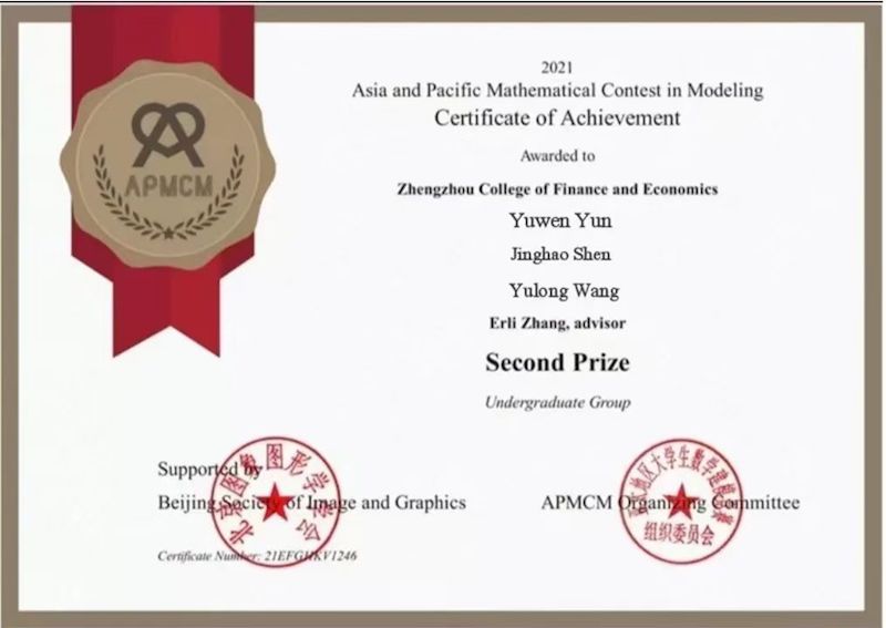 申京昊在APMCM亚太数学建模与创新设计大赛获得二等奖