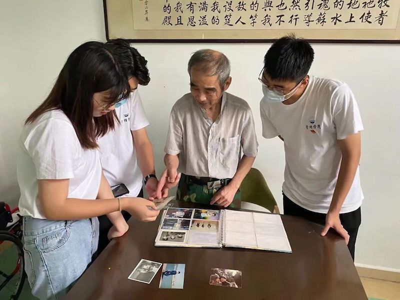 申京昊聆听敬老院老兵党员讲述从军经历(右一)