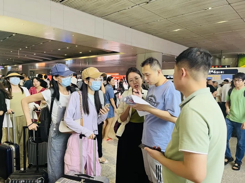 研修班学员集合完毕之后,工作人员耐心地为大家讲解了乘车的相关安排,带领学员们前往大巴车乘车处。