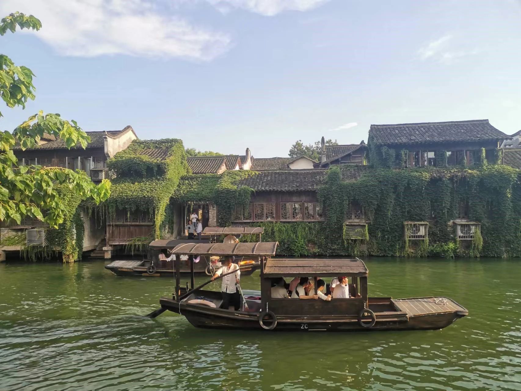 师生了解了江南民居及其装饰特色,重点考察其“桥多、弄多、廊棚多”三大特点,拍摄西栅夜景,收集设计素材;乌镇老街那摇曳的乌篷船及沿水而居的慢生活画面让人从梦境走入现实,吸引着师生坐船细细品读。