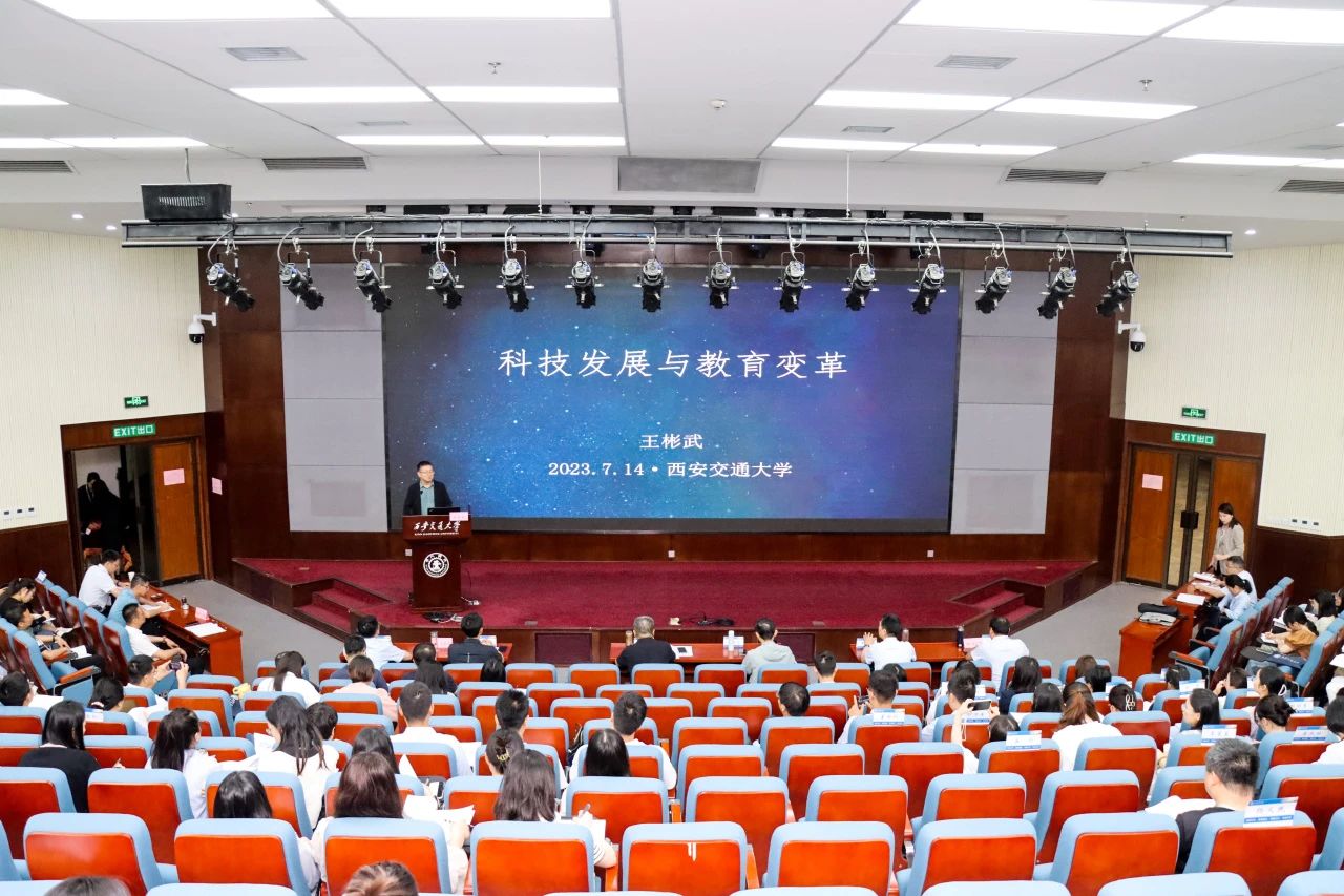7月14日上午,威廉希尔足球官网素质能力提升培训班经济类、理工类、文科类、公共类参训学员齐聚西安交通大学科学馆,陕西省教育厅教师工作处处长王彬武为学员们带来《科技发展与教育变革》主题讲座。王处长从基础研究和教育科学的关系、卡脖子问题是怎么产生的、科学与技术的关系、文化观念与科学思维的关系等方面进行讲授,引经据典,发人深省。